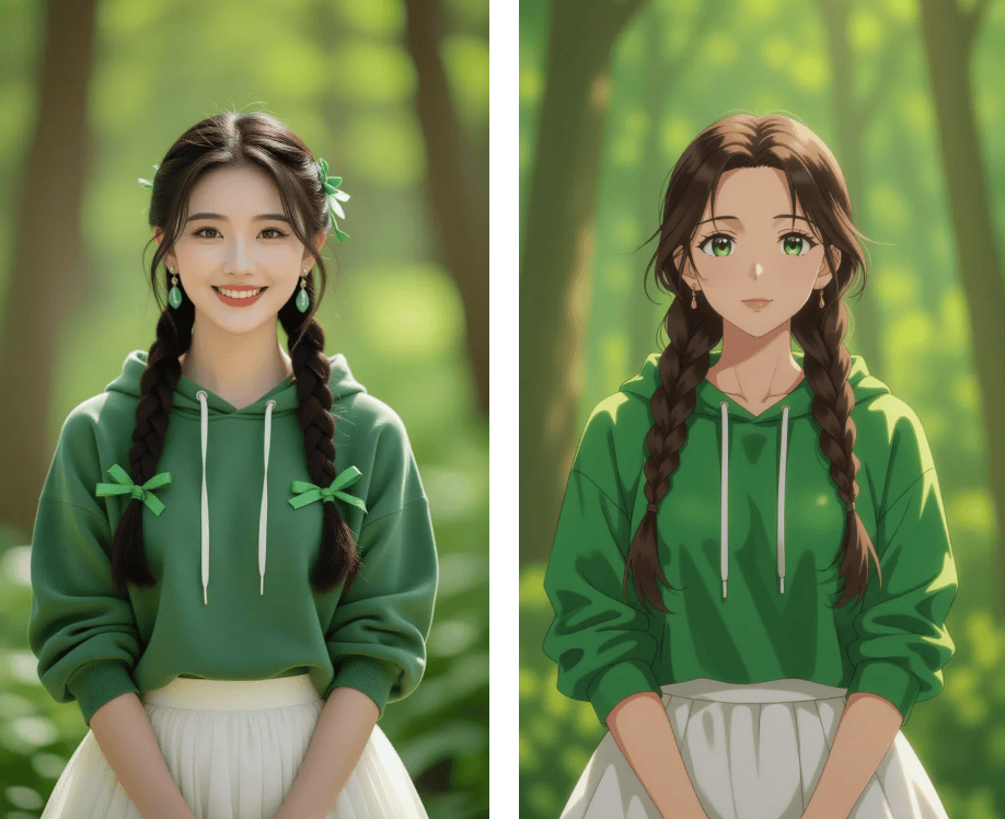 从国风水墨、日系甜美到蒸汽波气概,顶流热评写着:这是什么打破次元壁的仙人东西?无需调整参数,我正在搜刮框输入实人动弹漫东西,点开词条,