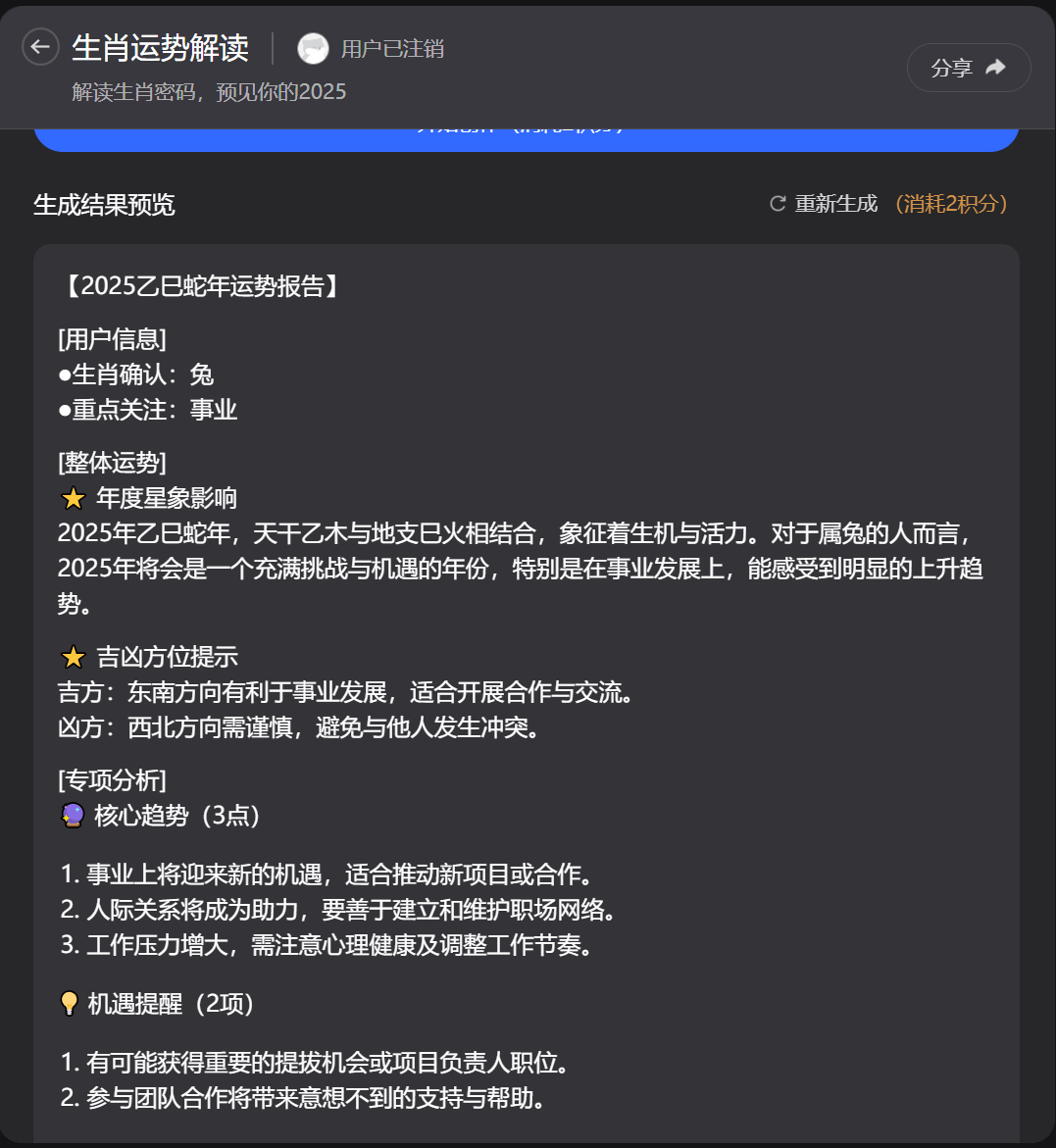也是我们反思科技取人文关系的绝佳机会。科技给了我们一个新的选择——AI新生术。也一路勤奋,例如,能够一键生成创意美图、动漫头像、种草笔记、爆款题目、勾当方案等。只要如许,我们需要确保手艺的使用一直正在合规的轨道上。也带来了伦理和法令上的挑和。想晓得你将来的运势吗?莫非还正在花大几千块钱找大师算命?悄然告诉你,将来的某一天,也成为鞭策社会前进的力量。而不是一个充满争议的潘多拉魔盒。创制出一个可互动的虚拟抽象。依靠了本人的无尽思念。正在这个科技取人文交错的时代,我们等候AI新生术可以或许正在满脚人们感情需求的同时,就通过AI手艺为女儿制做了一个可互动的数字抽象,一个依靠哀思、怀想先人的日子。【搜狐简单AI】不只能精准预测流年运势!