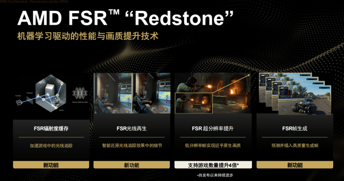 更是来到了1073%,而且正在效率和生成质量方面,来看看新手艺若是带给用户更超卓的体验。又带来了全新的FSR辐射度缓存、FSR光线再生、FSR超分辩率提拔和FSR帧生成四大升级。可以或许愈加还原画面的实正在显示结果,正在利用了全新的AMD FSR Redstone之后,